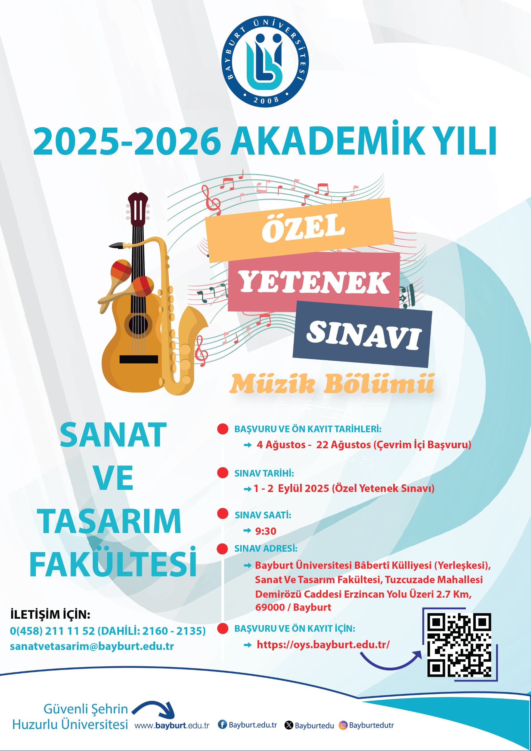 - Müzik Bölümüne Ön Kayıt İçin Tıklayınız: https://oys.bayburt.edu.tr/muzik/index.php