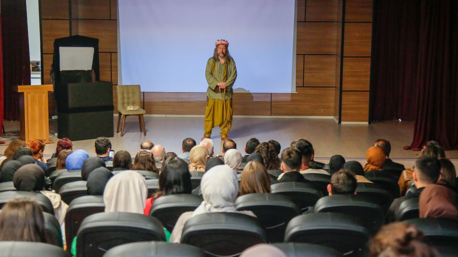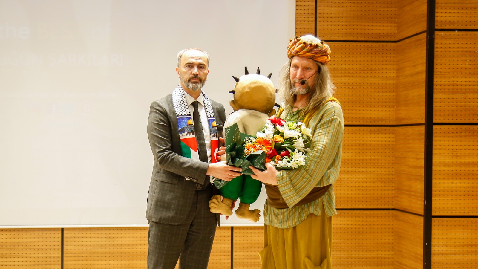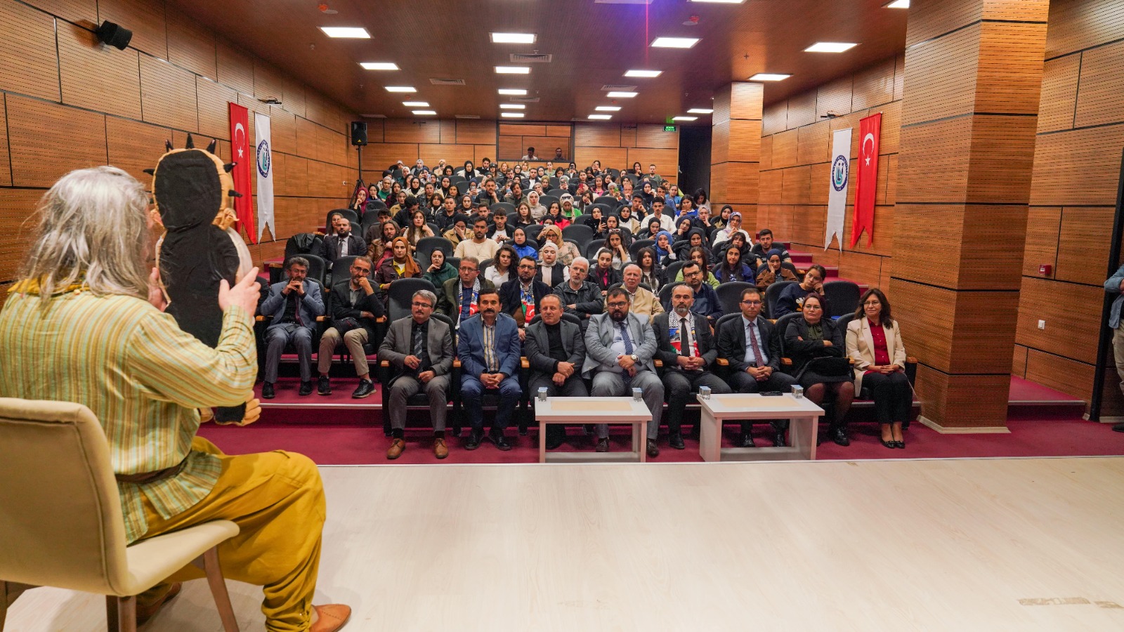 8. BAYÜ Çocuk Şenliği kapsamında Üniversitemizde olan Mehmet Tahir İkiler’in sahnelediği “Meddah Amca ve Kocaman Geveze Kuklalar” oyunu sergilendi. İkiler aynı zamanda “Gazze’ye Selam” isimli özel solo performans gösterisini de Filistin’de katledilen binlerce masum çocuğu ve sivili anlam için sahneye koydu. Büyük alkış alan gösteride Filistin halkının onurlu direnişine ve insanlık değerlerine atıf yapan İkiler, herkesi bu mücadelenin sorumluluğuna ortak olmaya davet etti.