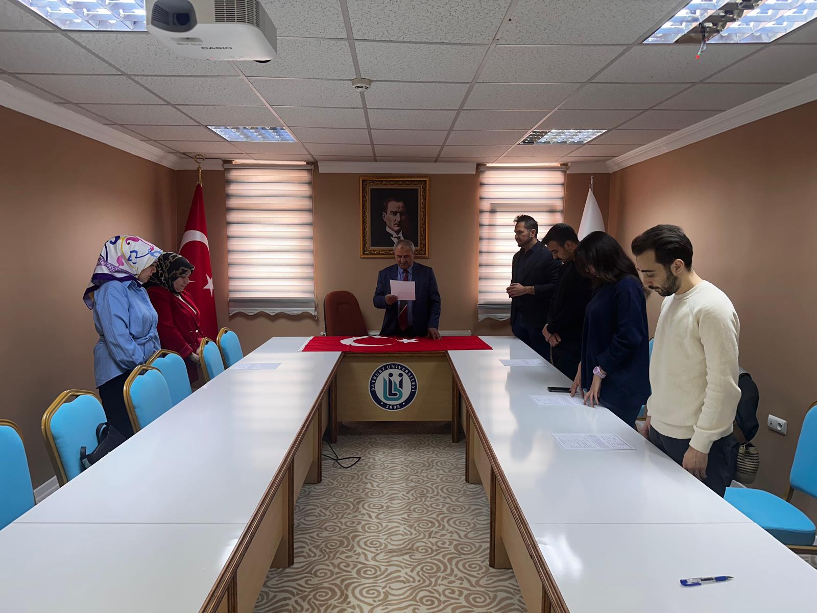 Üniversitemiz İdari Personellerinden, aday memurluk sürecinde eğitimlerini başarıyla tamamlayarak asli memurluğa atanmaya hak kazanan personelimize 26.12.2024 günü İdari Birimler binası toplantı salonunda Personel Daire Başkanımız Sayın Fatih AKBAŞ eşliğinde yemin töreni düzenlenmiş, tören ardından personelimiz asaleten devlet memurluğu görevlerine başlamışlardır.