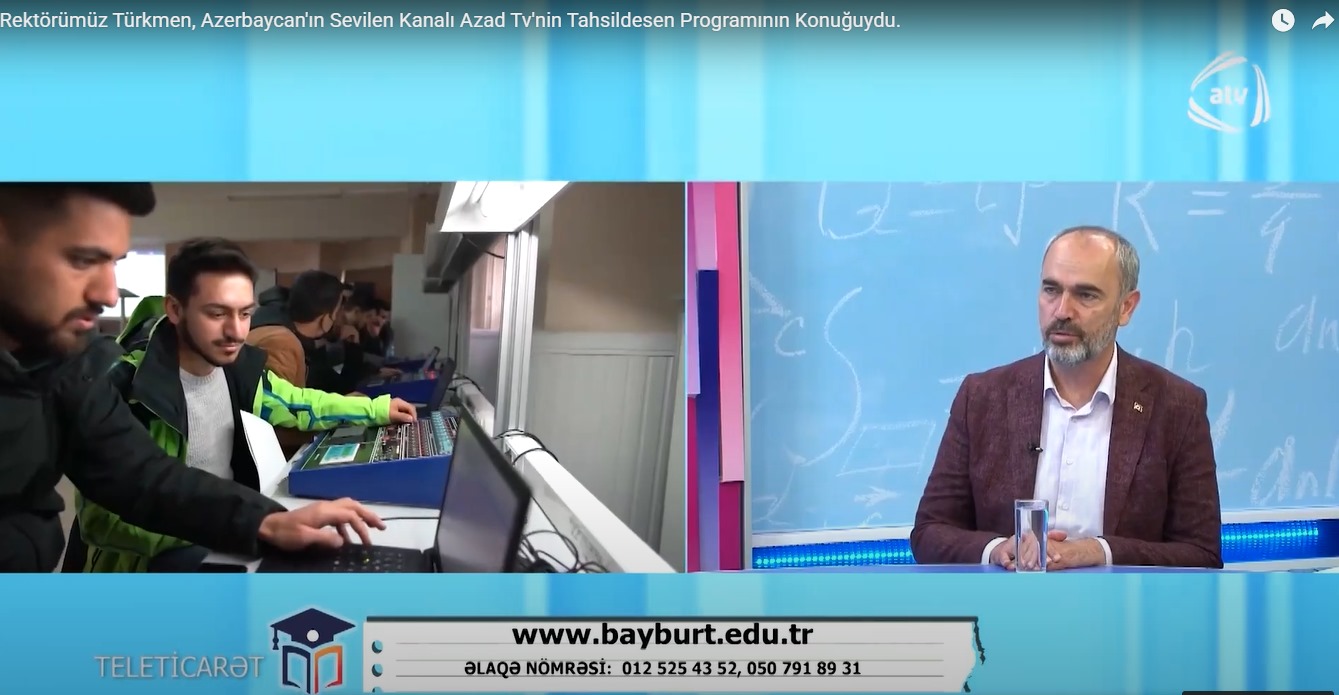 Azerbaycan’ın en çok izlenen kanallarından Azad TV’de, Günay Yelmarqızı’nın programına katılan Rektörümüz Prof. Dr. Mutlu Türkmen, Azerbaycanlı öğrencilerin neden Bayburt Üniversitesi’ni tercih ettiklerini anlattı.