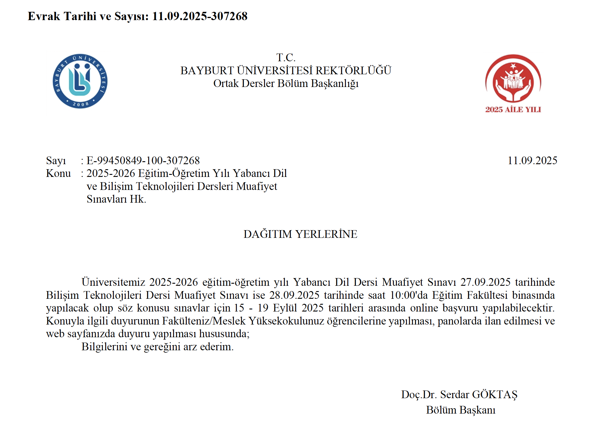 Yabancı Dil ve Bilişim Teknolojileri Ders Muafiyet Duyurusu