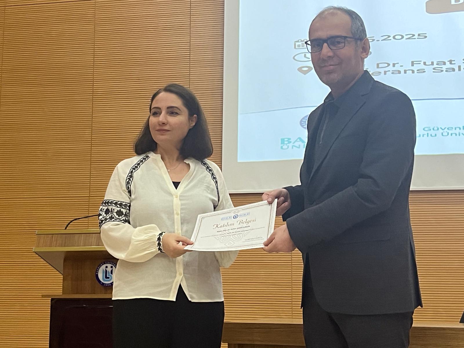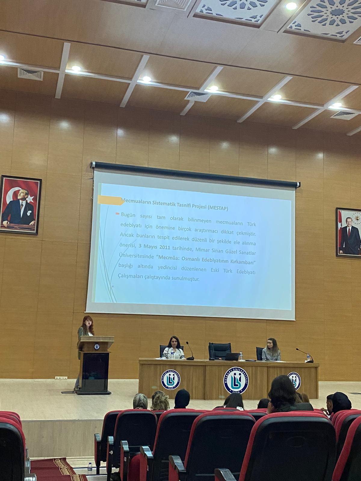 Fakültemiz Türk Dili ve Edebiyatı Bölümü ve Türkoloji Öğrenci Topluluğu’nun hazırladığı Dil ve Edebiyat Konuşmaları II paneli; Doç. Dr. Ruken Karaduman, Dr. Öğr. Üyesi Merve Büyükada ve Dr. Öğr. Üyesi Aslıhan Aytaç’ın katılımları ile gerçekleşitirildi. Konuşmacılar sırasıyla; Türk şiirindeki kadın imgesinden, klasik Türk edebiyatı dönemi mecmuaları ile şiir mecmualarının öneminden ve yenileşme devri Türk şiirindeki tabiat anlayışından bahsettiler. Program, İnsan ve Toplum Bilimleri Fakültesi dekanı Prof. Dr. Yakup KAHRAMAN’ın katılımcılara teşekkür belgelerini takdim etmesiyle sona erdi.