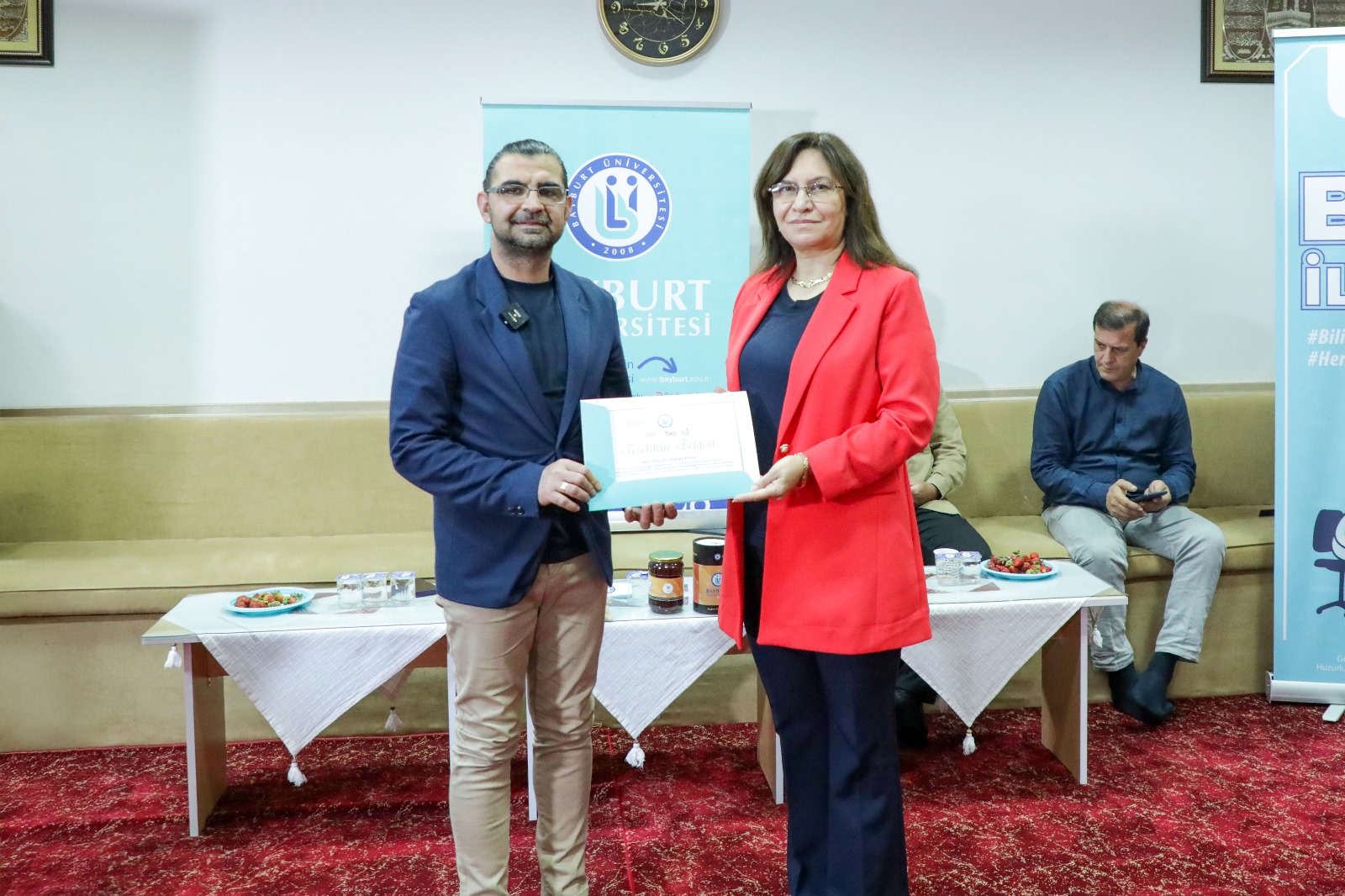Sohbet sırasında, Üniversitemizin yıllardır başarıyla ürettiği çilekler ikram edildi. Vatandaşlarımızın sorularına içtenlikle yanıt veren konuşmacılar, bilimi halkın diliyle buluşturma hedefini başarıyla yerine getirdi. Bayburt’un sosyal medya fenomeni Vizyontruck da programa katılarak mizahi bir üslupla sorular yöneltti ve samimi yanıtlar aldı.