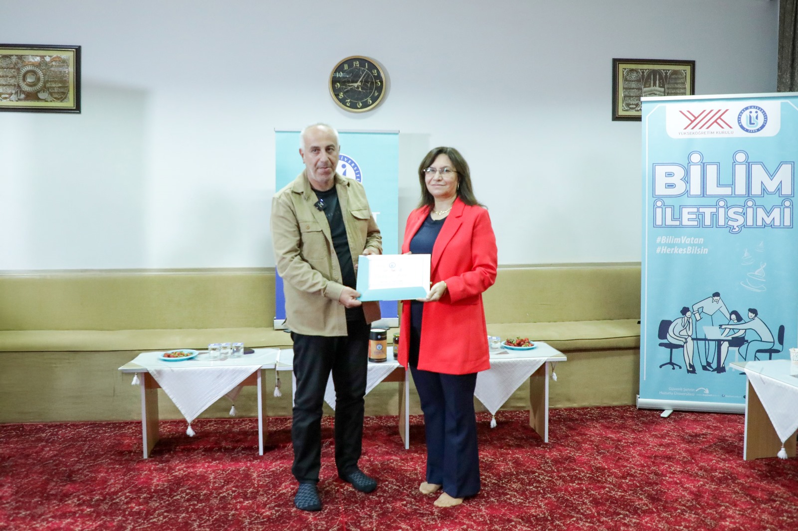 Etkinlik sonunda Rektör Yardımcımız Prof. Dr. Ümmügülsüm Erdoğan tarafından konuşmacılara teşekkür belgeleri takdim edildi. Rektörümüz Prof. Dr. Mutlu Türkmen ise yaptığı değerlendirmede, ilk Bilim Kafe buluşmasının yakaladığı sıcak ve samimi etkileşimi yeni etkinliklerle sürdüreceklerini belirterek, bilim iletişimini şehrin tüm katmanlarına ulaştırmaya devam edeceklerini ifade etti.