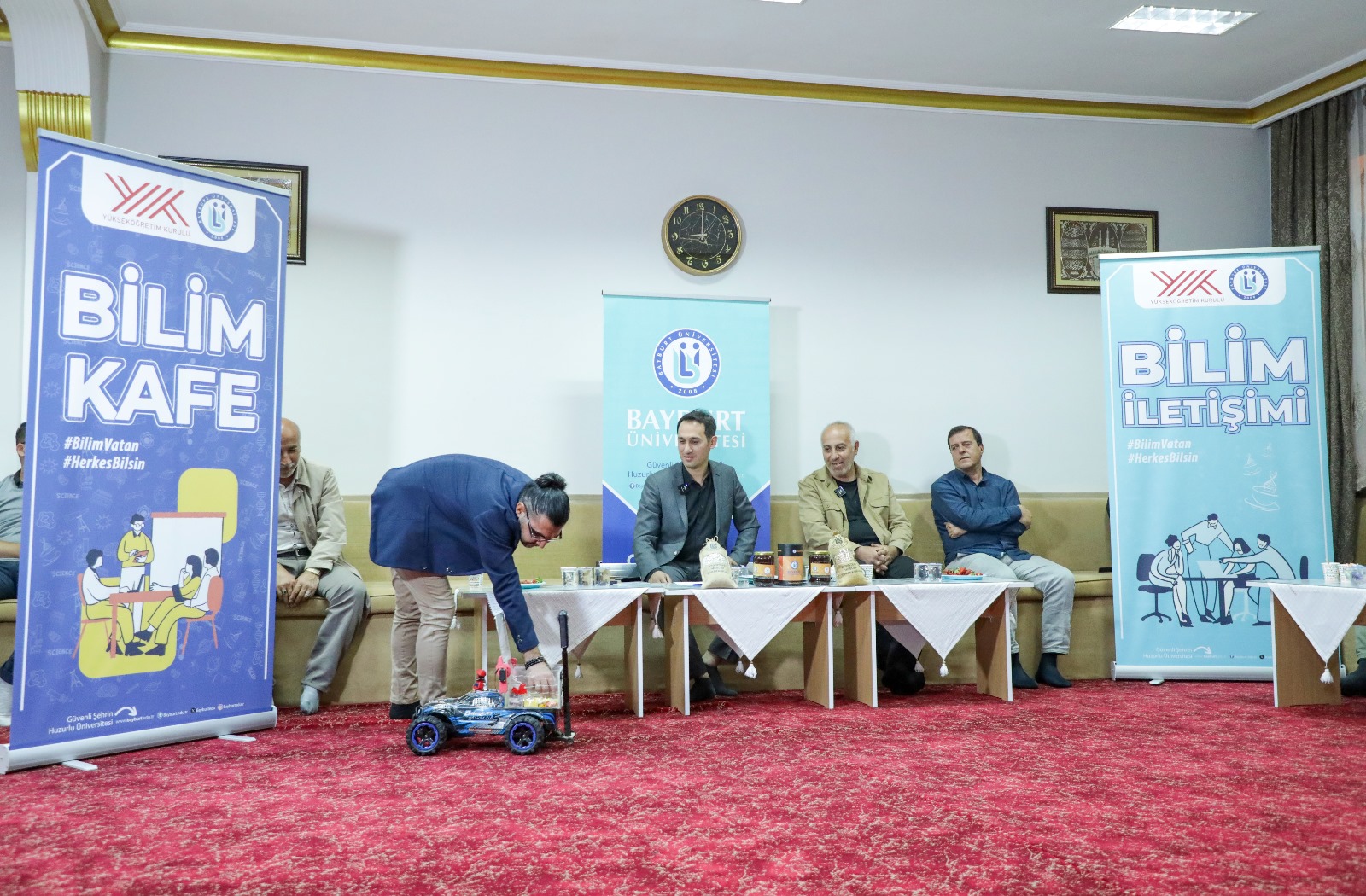 Halkın bulunduğu her ortamda bilimi anlatma misyonunu üstlenen Bilim Kafe söyleşileri, Bayburt’un tarihsel kamusal alanlarının başında gelen ve sembolik bir değere sahip olan Tuzcuzade Mahalle Odası’nda düzenlendi. Öğr. Gör. Osman Canan’ın moderatörlüğünde gerçekleşen söyleşide, Doç. Dr. Gökhan Kömür “Dijital Bağımlılık ve Aile İçi İletişim”, Doç. Dr. Yaşar Erdoğan ise “Modern Arıcılık Teknikleri” başlıklı sunumlarını gerçekleştirdi. Konuşmalar, Üniversitemizin YouTube kanalından canlı yayınlanırken, Anadolu Ajansı başta olmak üzere yerel basın mensupları etkinliğe yoğun ilgi gösterdi.