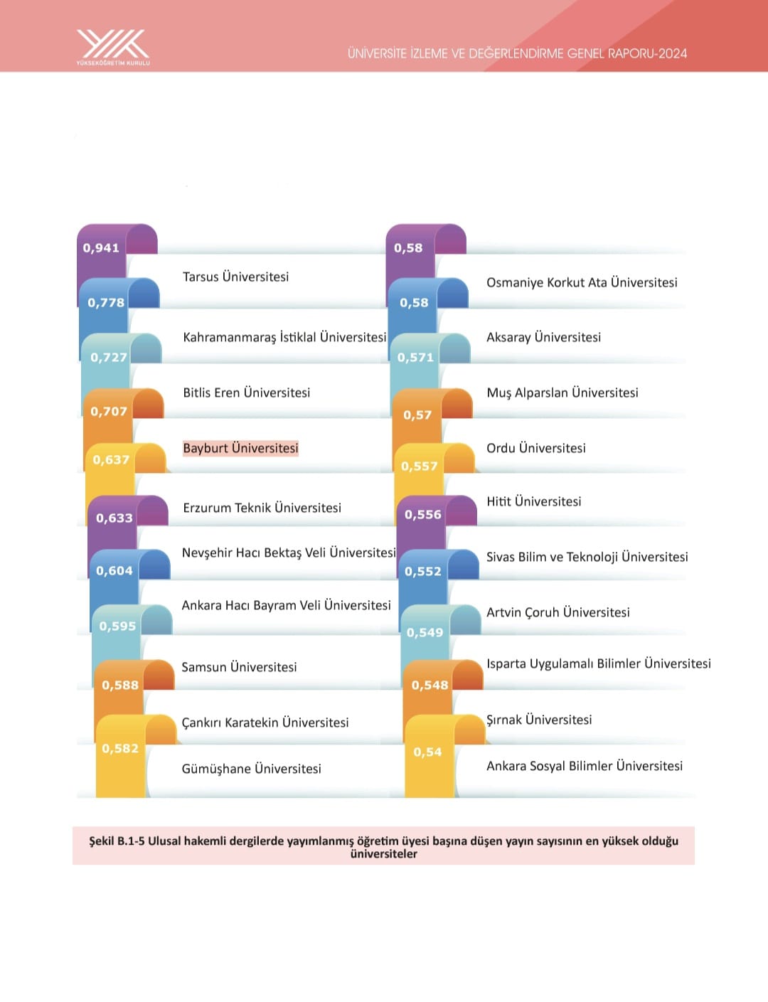 Rapora göre, Bâbertî Külliyesindeki toplam elektrik enerjisi tüketiminin %58’ini karşılayan Güneş Enerjisi Santraliyle yenilenebilir enerji kaynaklarının etkin kullanımı kategorisinde Türkiye’de ilk sırayı alarak büyük bir sürdürülebilirlik ve çevrecilik başarısı gösteren Üniversitemiz aynı zamanda öğretim elemanı başına düşen ulusal yayın ortalamasında da 0,637 oranıyla Türkiye genelinde 4. sırada yer aldı. Üniversitemiz ayrıca 506 proje ile en fazla TÜBİTAK proje desteği alan 19’uncu üniversite olmayı başararak yükselişini sürdürdü. Bu güçlü performans, akademik gelişimimizin istikrarlı bir şekilde devam ettiğinin göstergesi olarak değerlendiriliyor.