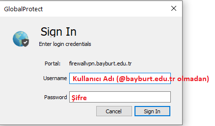 8. Adım: Gelen ekranda yine mail adresimizin Kullanıcı Adı ve Şifresi girilerek Sign In tıklanır.