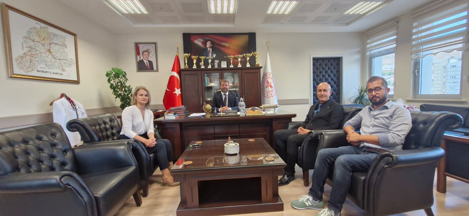 Ziyarette, Doç. Dr. Sinan BAYRAM, Dr. Öğr. Üyesi Alican KAYA ve Öğr. Gör. Kübra TEMÜR ile birlikte İl Sağlık Müdürü Uzm. Dr. Harun SİVLİM’e yeni görevinde başarılar dileyerek, yüksekokul ile İl Sağlık Müdürlüğü arasında kurulabilecek iş birliği alanlarına dair fikir alışverişinde bulunuldu.
